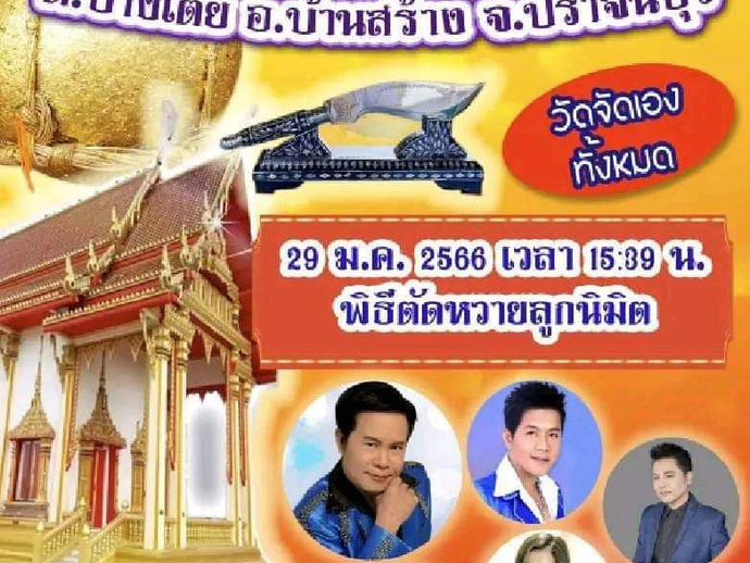 Title : ตรุษจีน ๖๖ ขอเชิญร่วมงาน ผูกพัทธสีมา ปิดทอง ฝังลูกนิมิต Start : ๒๐ ∽ ๒๙ มกราคม ๒๕๖๖ Location : ณ วัดคลองเฆ่ ตำบลบางเตย...